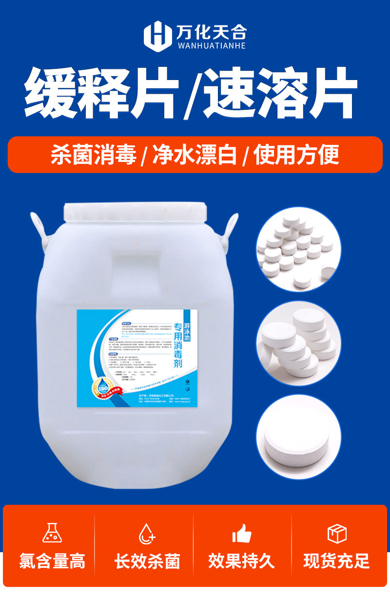 速溶片是一种长效、低毒、广谱、快速的杀菌消毒剂,可强力杀灭细菌芽孢、细菌繁殖体、真菌等各种致病性微生物,对肝炎病毒、流行肝病毒等有特效杀灭作用,能快速杀灭并强力抑制蓝绿藻、红藻、海藻等藻类植物。具有优异的杀菌性能,广泛用于游泳池消毒、工业水循环处理、食品加工业、饮食卫生业、水产养殖业、日用化学工业、医疗、托幼、防疫、垃圾处理、宾馆等。